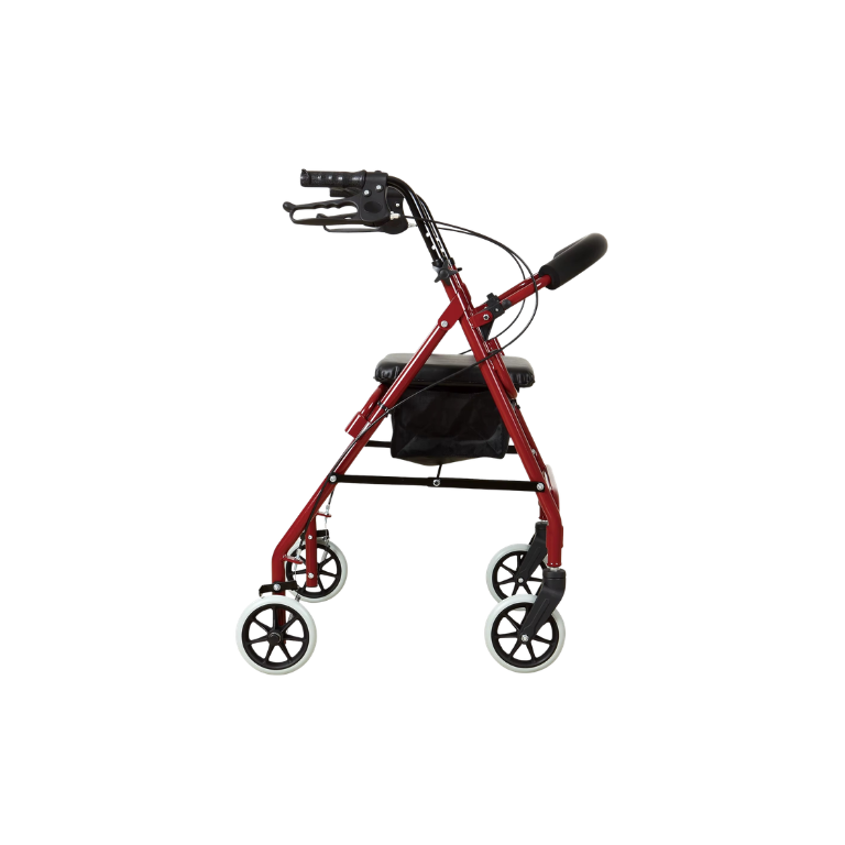 Andadera rollator roja plegable con asiento Sagitta | Seguridad, Funcionalidad y Bienestar para Uso Diario